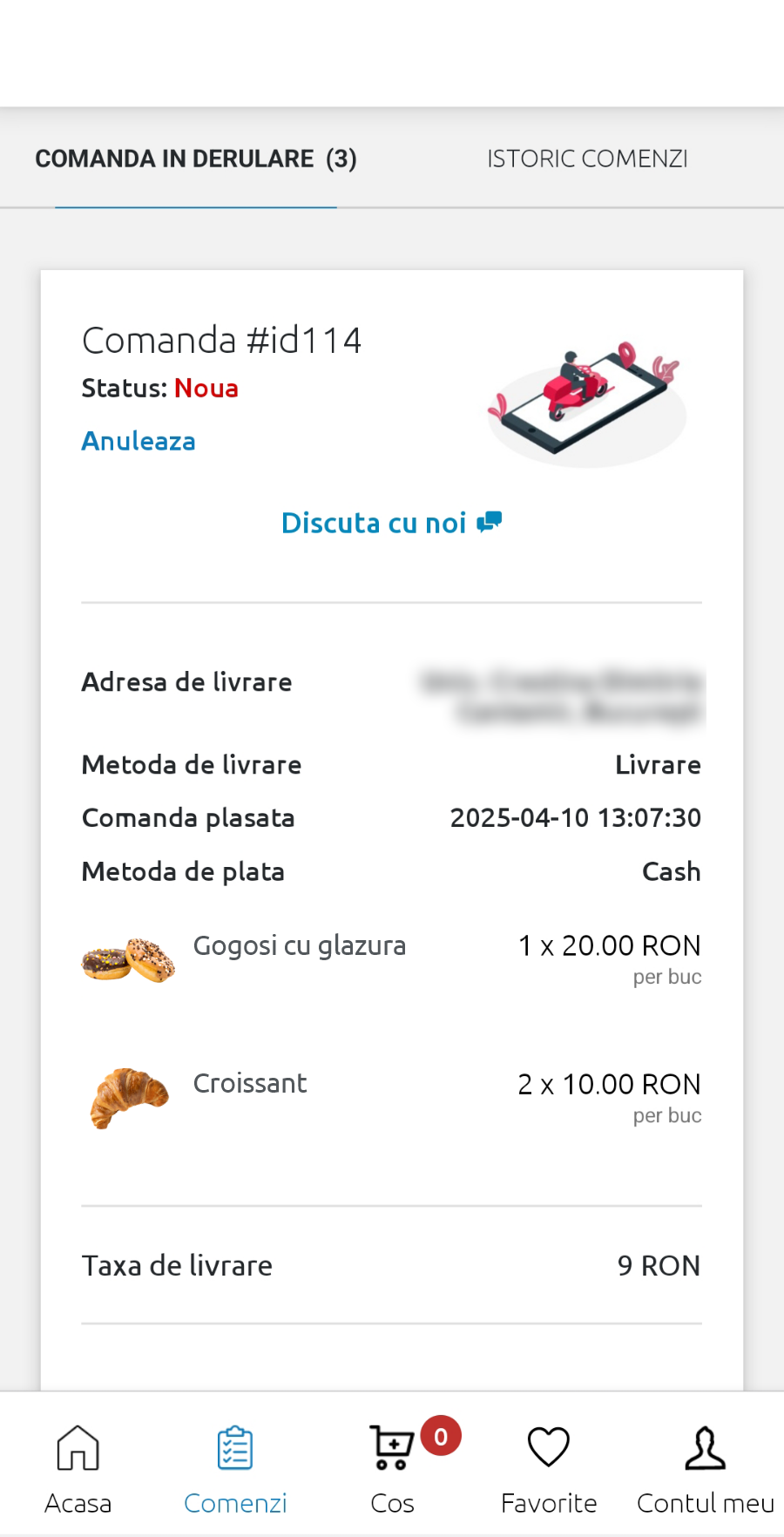 - Notificari push pentru confirmarea comenzii, schimbarea statusului si livrare.